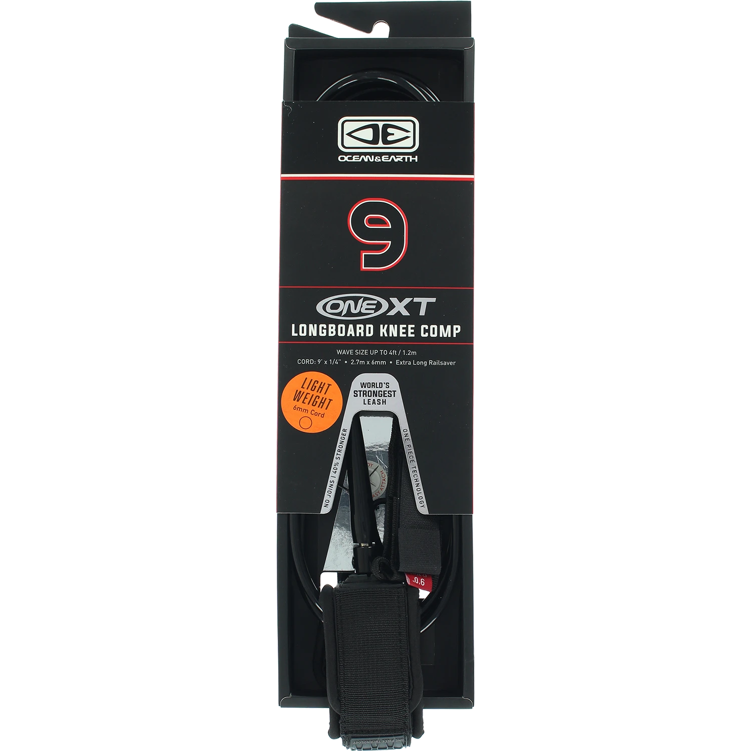 O&E ONE XT LONGBOARD KNEE COMP LEASH 9′ BLACK